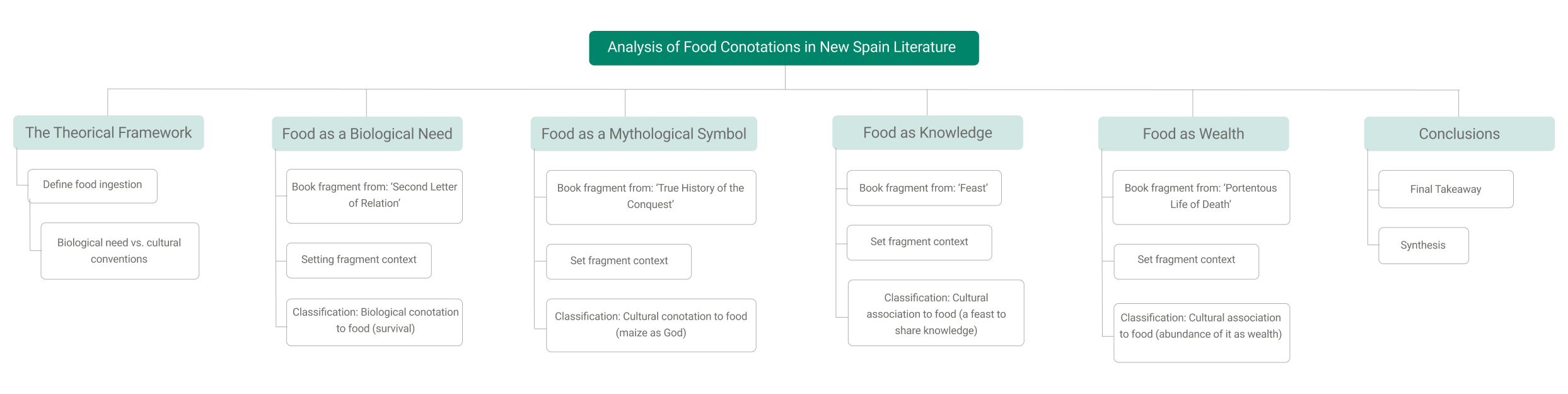 In this second map, we can observe a more complex structure but made with the same purpose: to organize the text sections and present the product in a way anyone can understand it. We started presenting the theory, applying it in a logical order, and closing it with a final takeaway and a general synthesis.