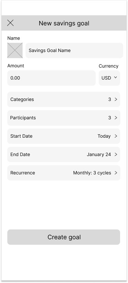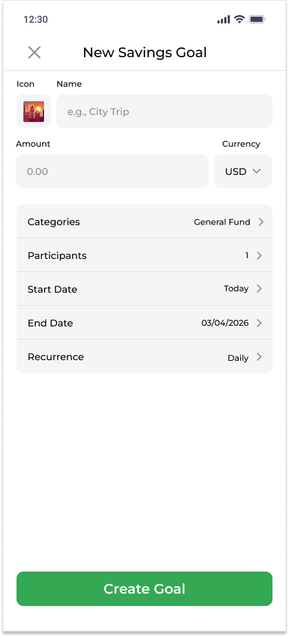 Savings Categories: Introduce a "categories" option within the savings goal, a feature competitors currently lack.