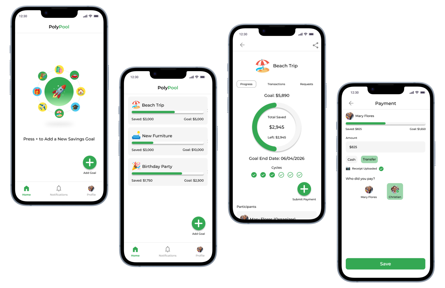 The product: PolyPool is a collaborative savings tracking app designed for friends and family.
